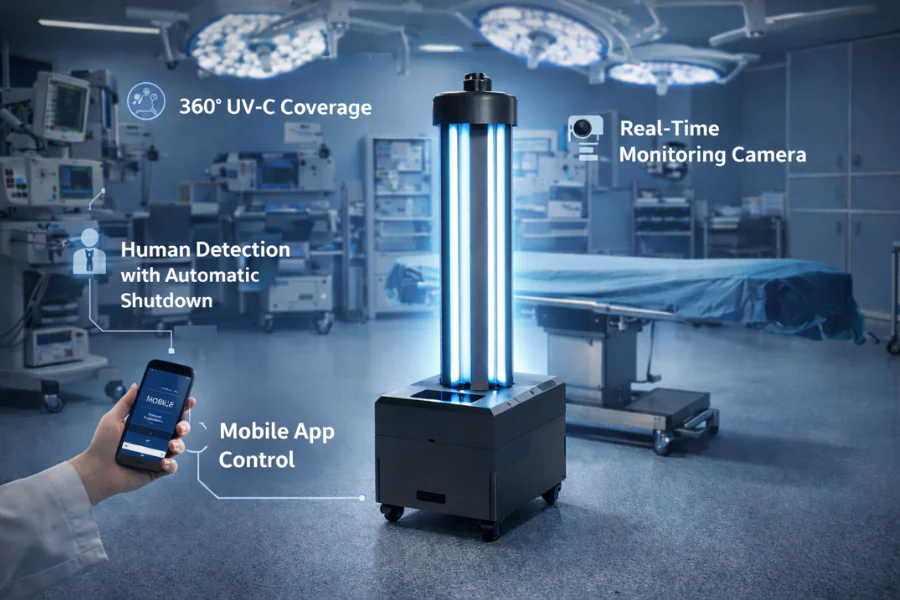 This solution offers a reliable and cost-effective approach to automated sterilization. Designed for local environments, it delivers proven UV-C performance, reduced operational dependency on manual cleaning, and long-term efficiency for organizations focused on safety and hygiene.